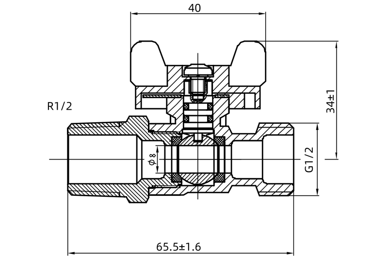 Válvula de bola con mango de mariposa de latón