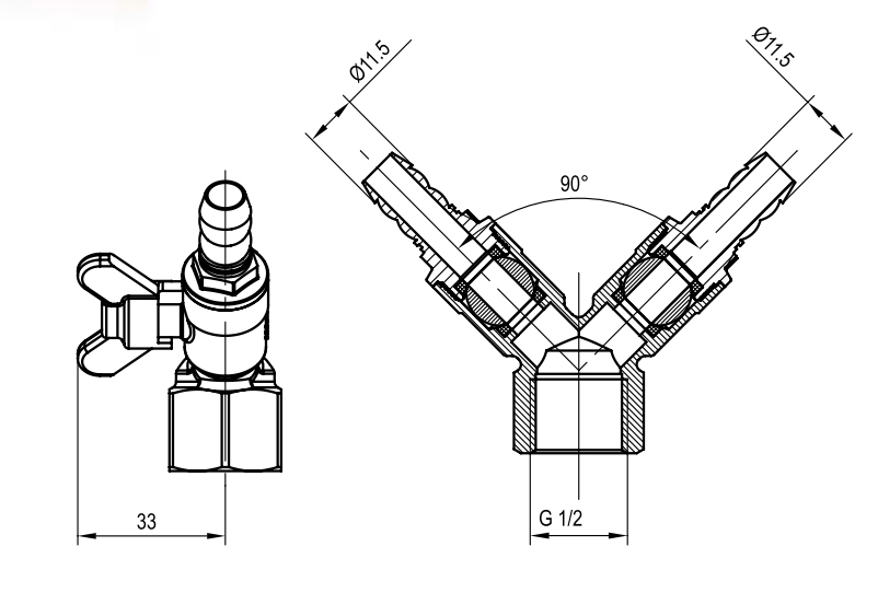 •Estructura de una entrada y dos salidas: entrada de rosca macho única con salidas de doble púa de manguera, lo que permite el suministro simultáneo a dos dispositivos, lo que reduce la ramificación de la tubería y los puntos de fuga.